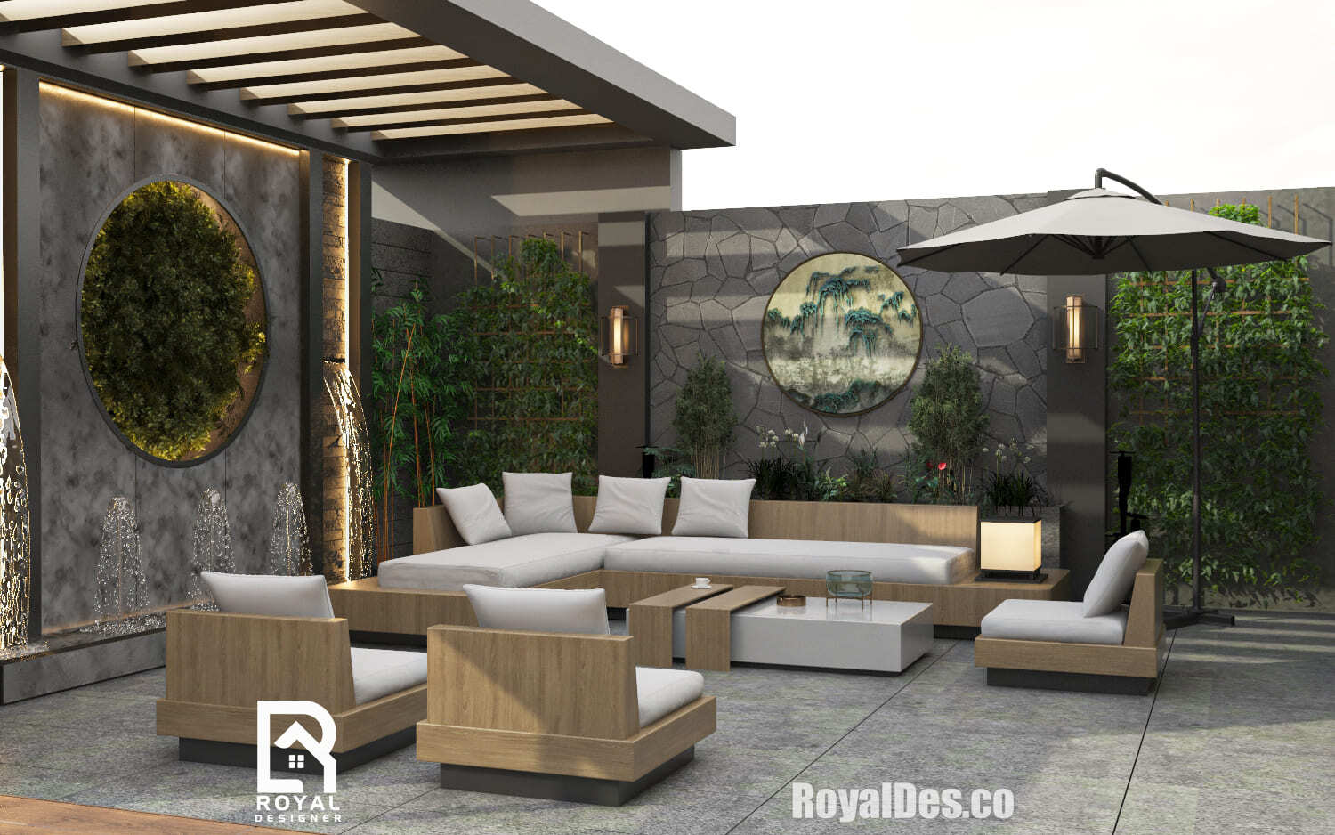 تصميم داخلي لحديقة فيلا في دولة الكويت ...