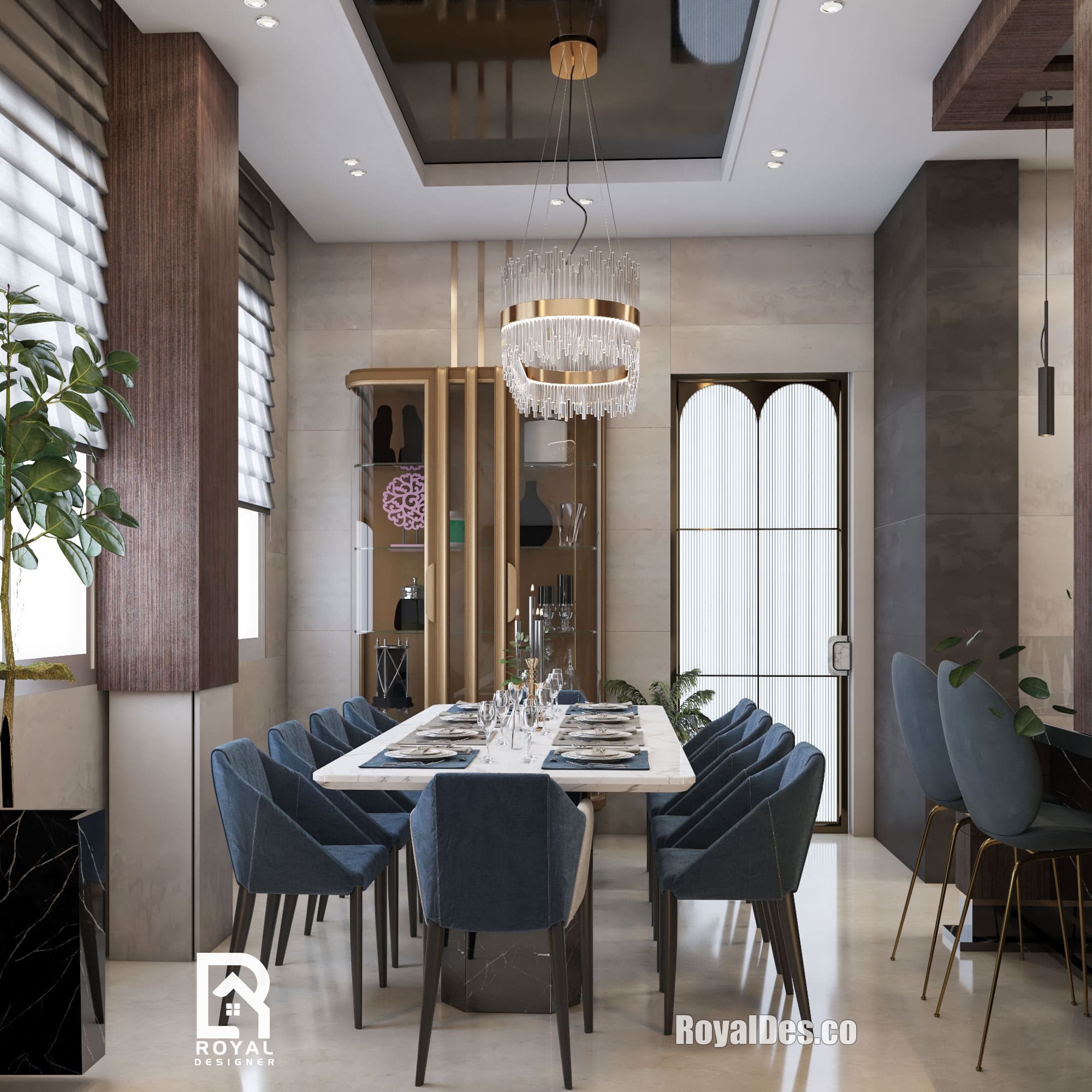 تصميم داخلي لمجلس مع ركن طعام وطاولة سفرة ...