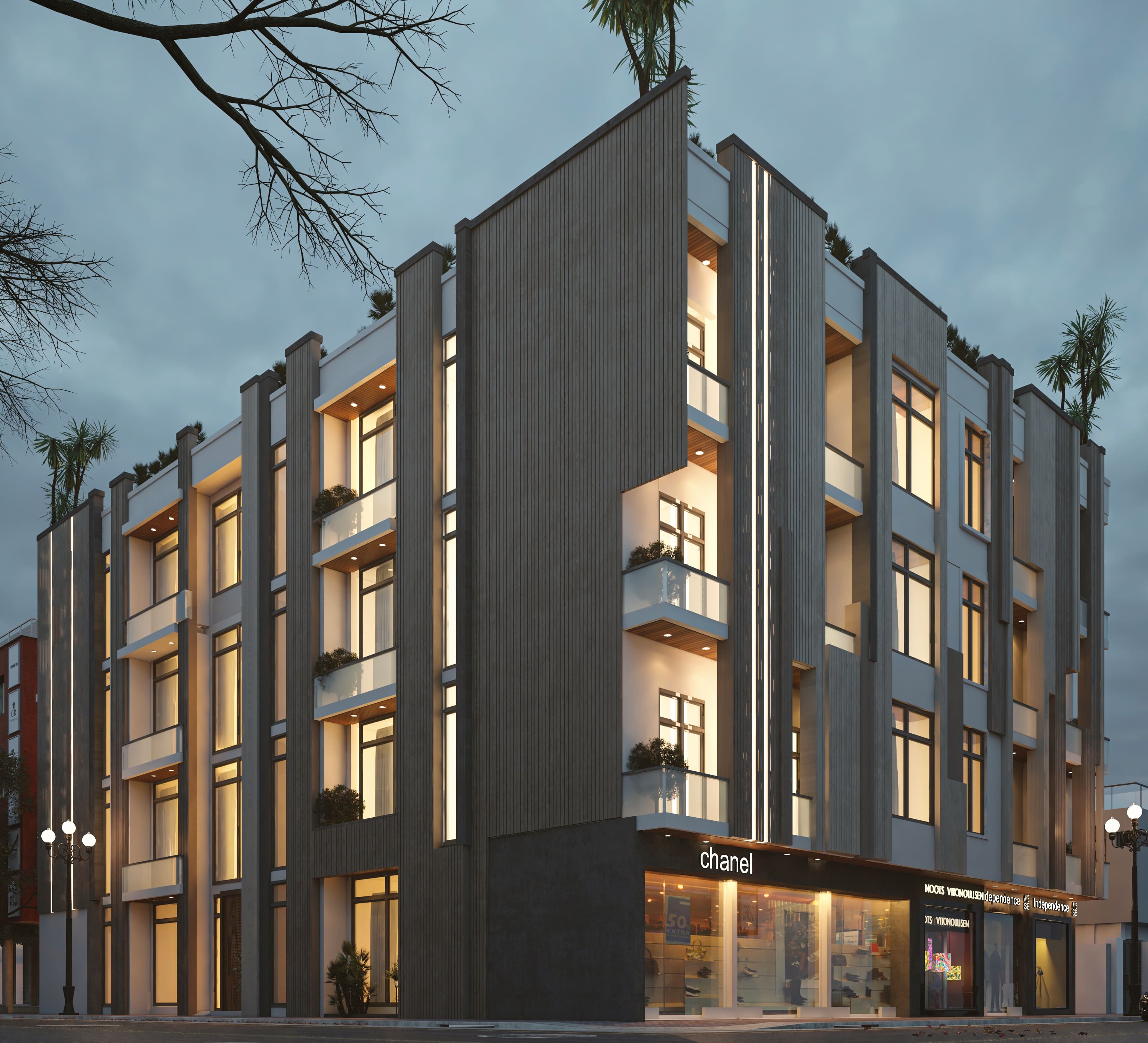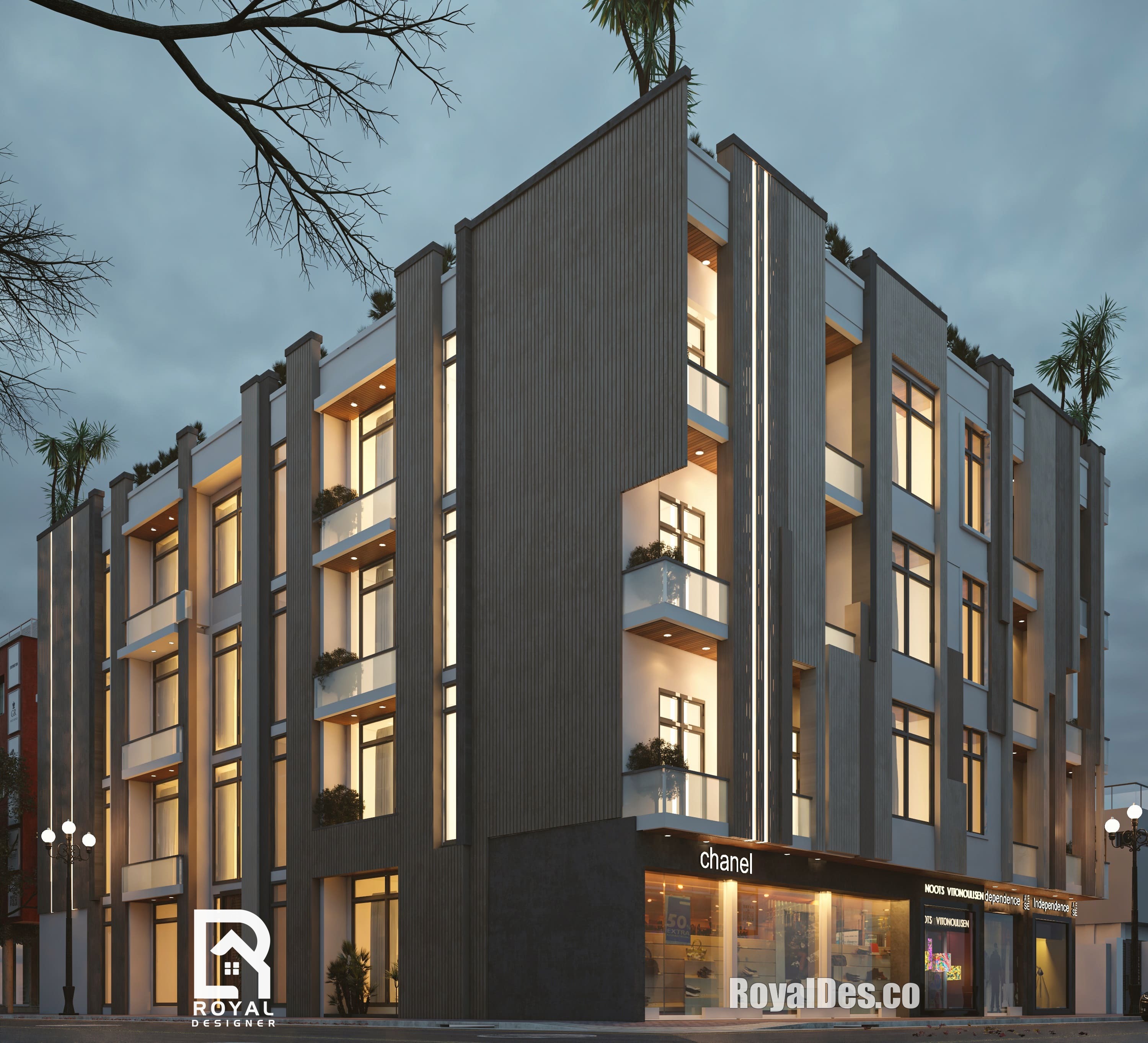 تصميم خارجي لمبنى سكني - تجاري في دولة الك ...