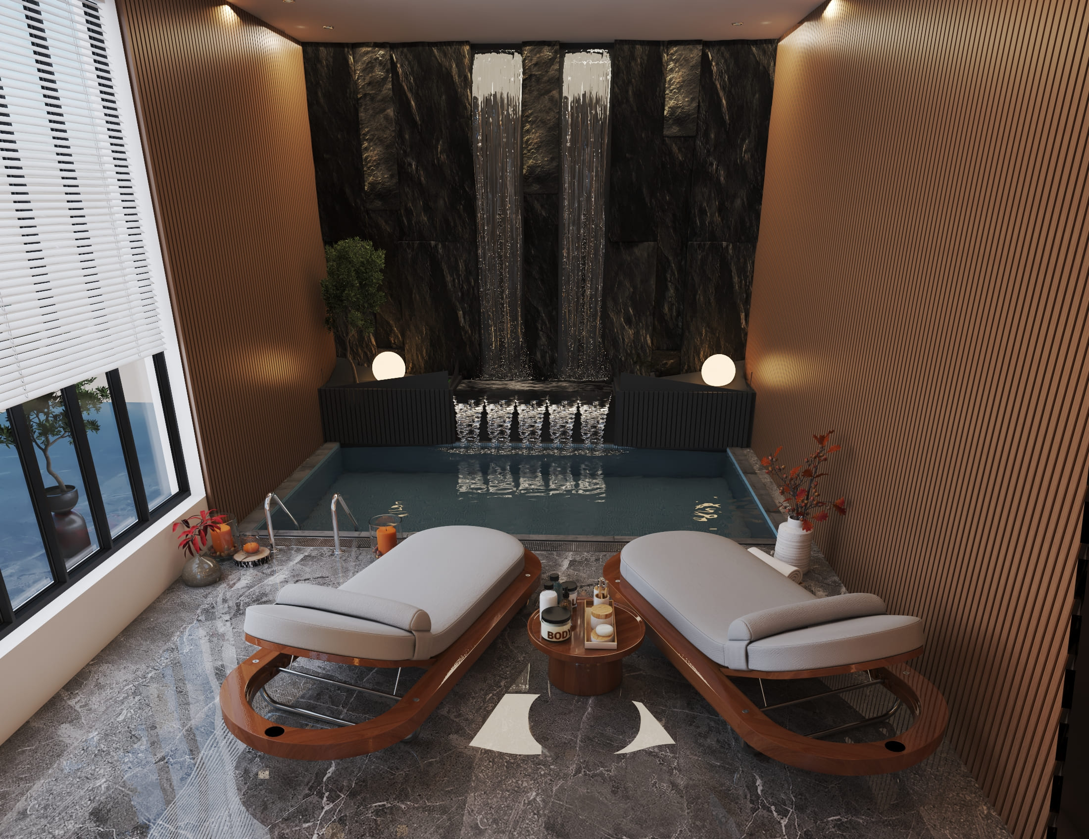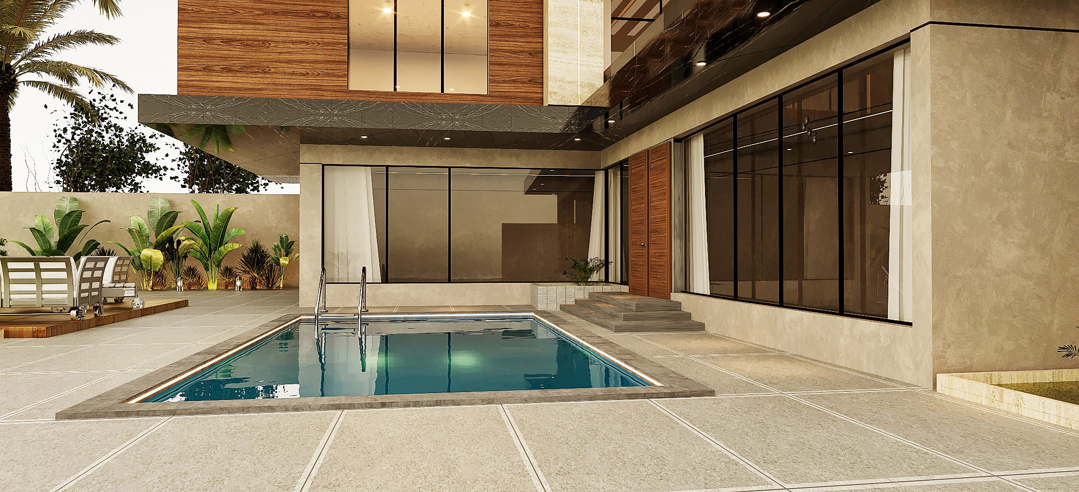 تصميم داخلي لمسبح ضمن فيلا في مدينة المنا ...