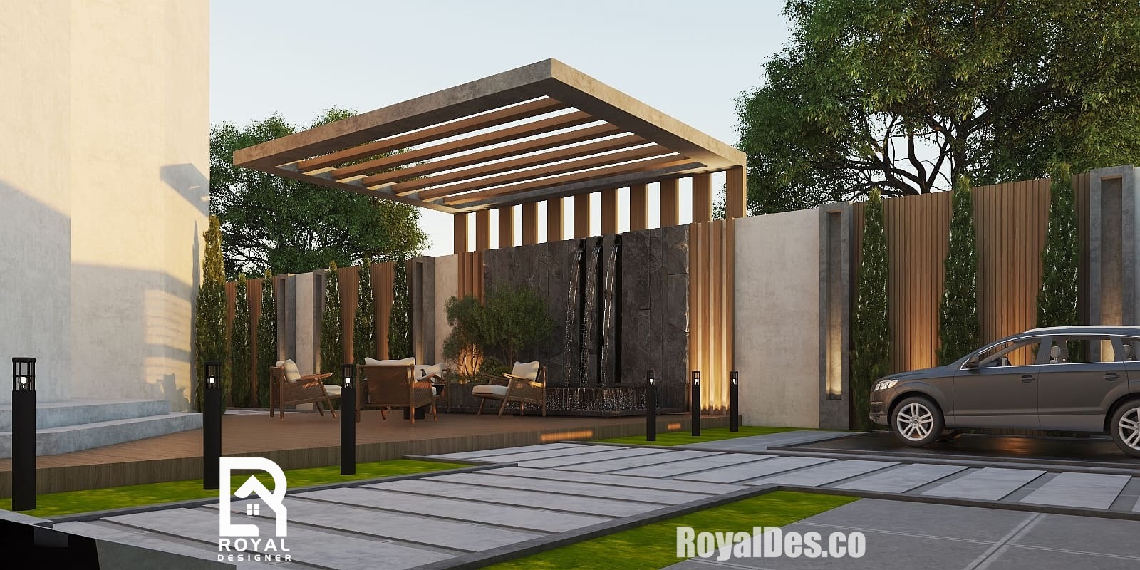 تصميم داخلي لحديقة فيلا في دولة الكويت ...