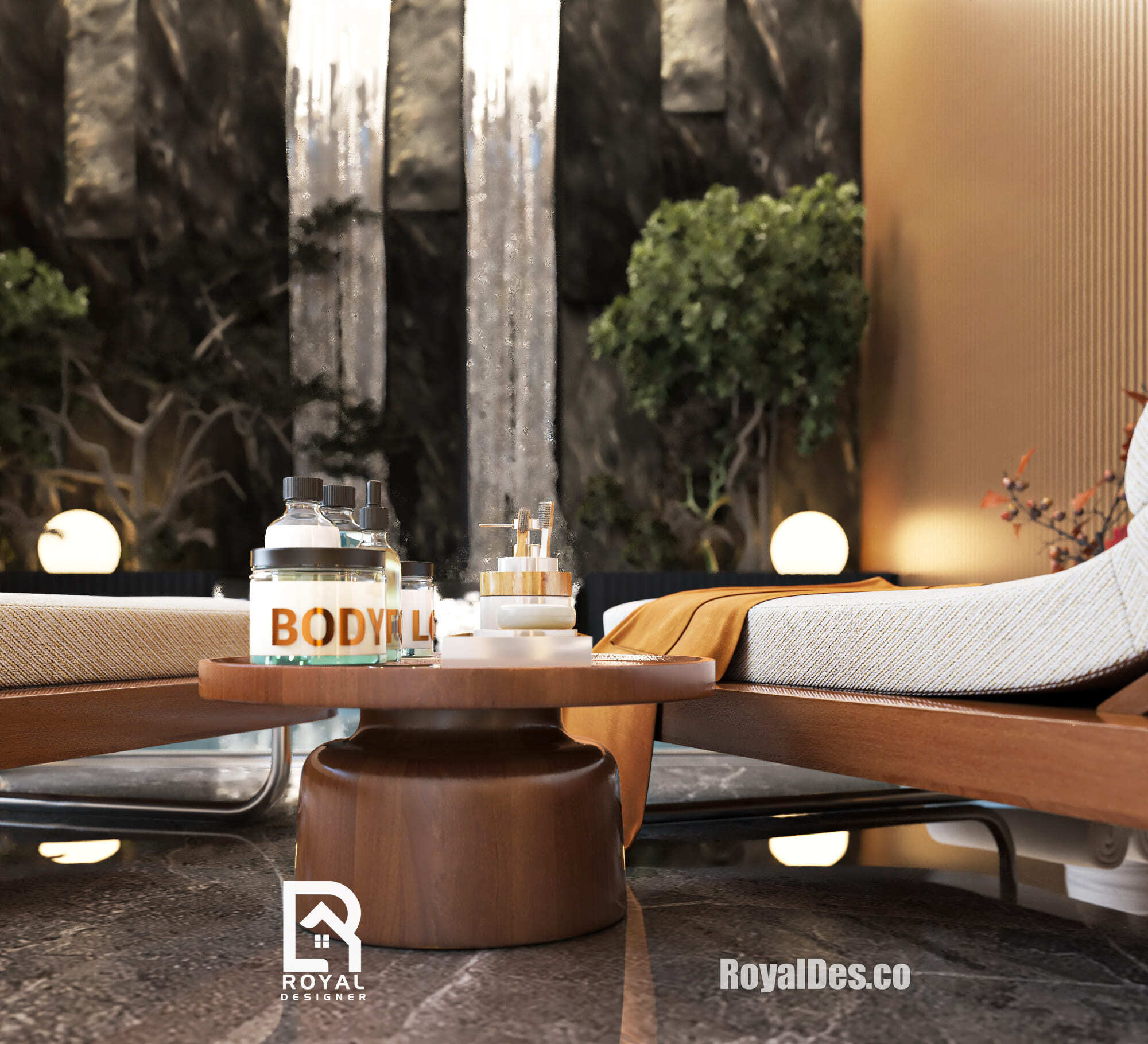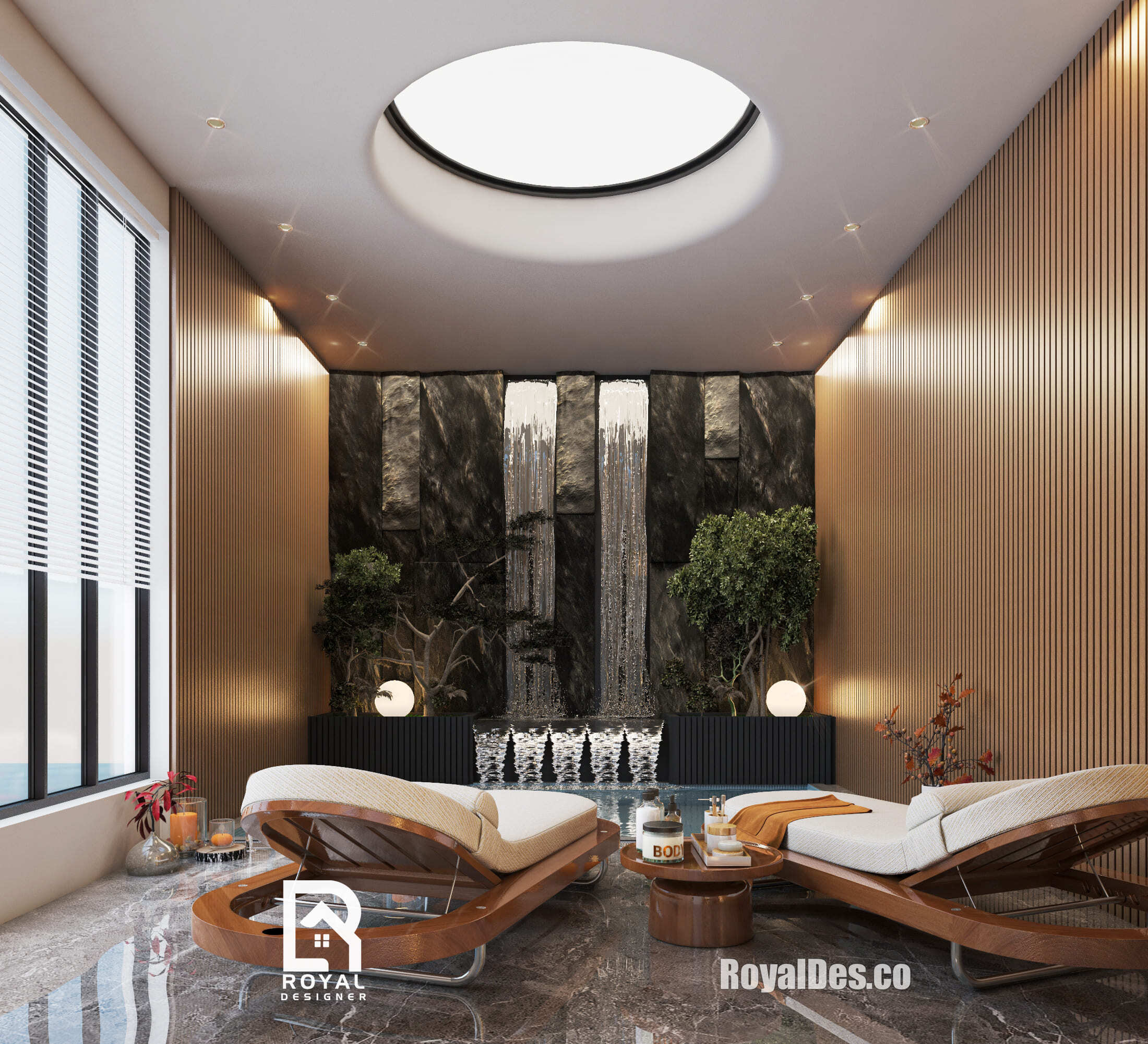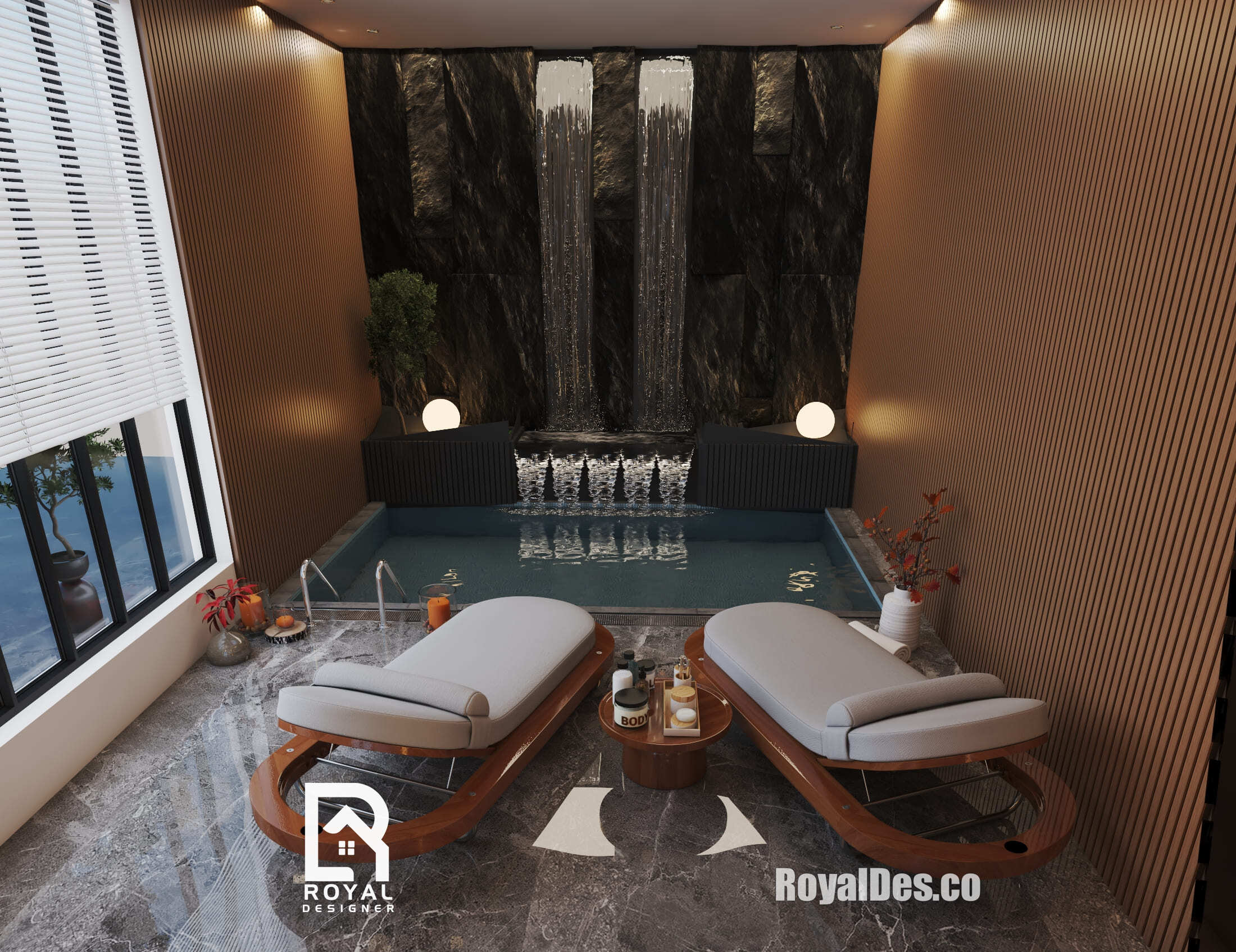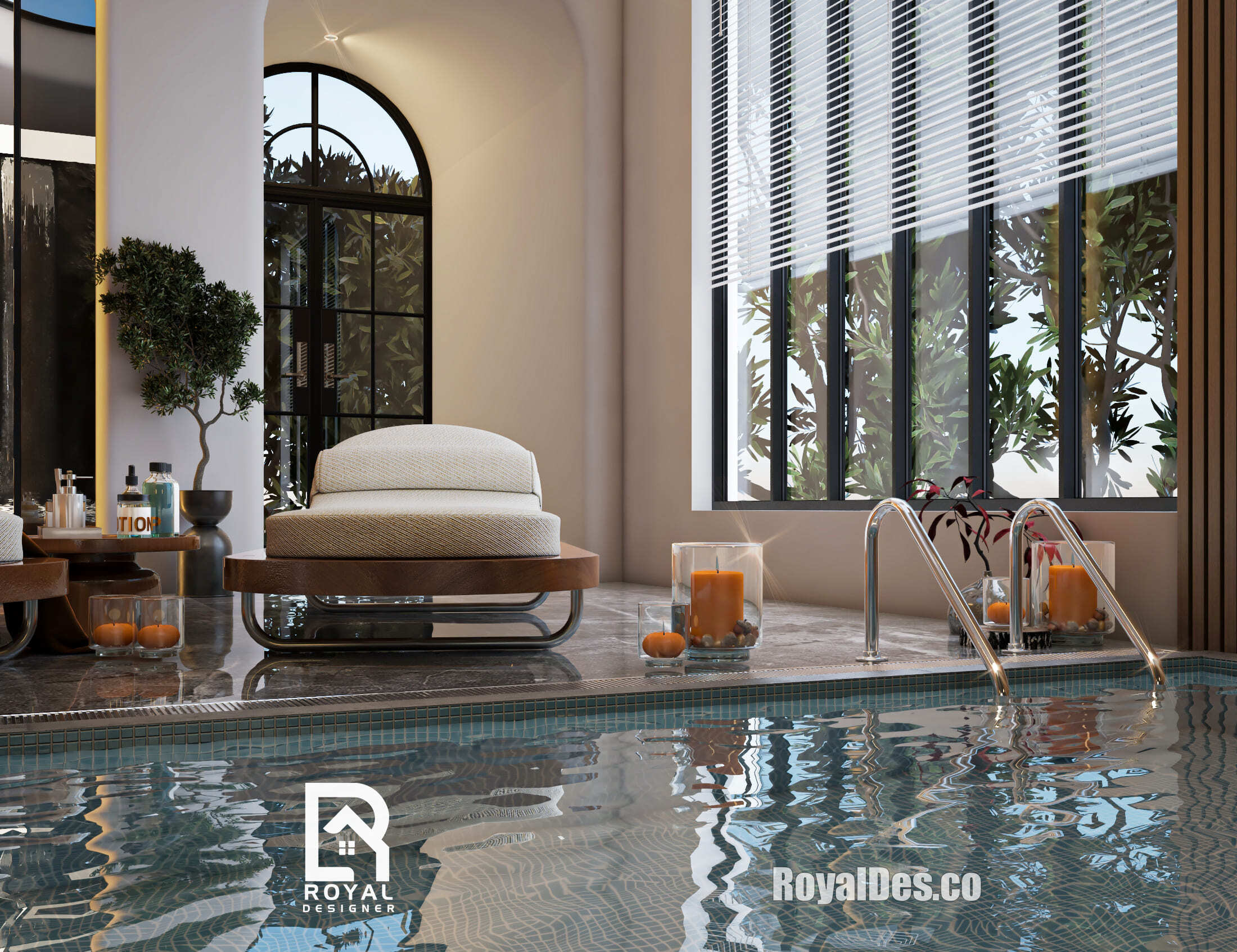 تصميم داخلي لمسبح ضمن فيلا في مدينة المنا ...